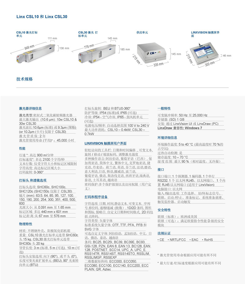 劃線激光系統(tǒng) Linx CSL30 激光打碼機為您提供簡單和復雜編碼的靈活的解決方案,滿足不同行速和材料的需求,為您的個性化需求而設計。Linx 用于超過 20 年的激光打碼生產(chǎn)經(jīng)驗,,成千上萬個Linx 激光產(chǎn)品在全球范圍內(nèi)安裝,Linx CSL30 激光打碼機可使用超過26 種語言。