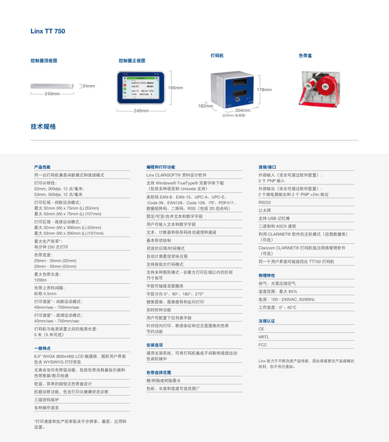 采用先進(jìn)的電機(jī)驅(qū)動(dòng),作業(yè)過(guò)程中不使用壓縮空氣。 打印速度高達(dá) 750 mm/s,打印寬度高可達(dá) 53mm。 生產(chǎn)效率非常高,TT750的生產(chǎn)效率為每分鐘250次打印。 打印質(zhì)量高,打印頭大小直達(dá)300dpi。